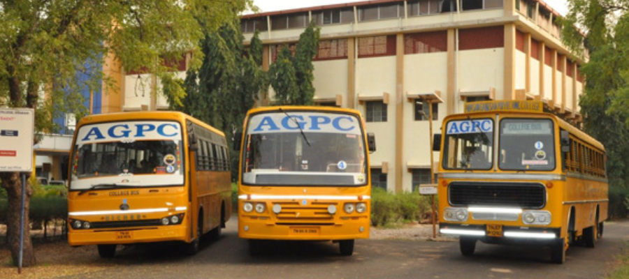 Three of our buses flying from Sivakasi ,Srivilliputhur, Sattur to AGPC. Staff and Students are entitled to make use of bus services available. The buses are also available for industrial visits and tours by students and staff.